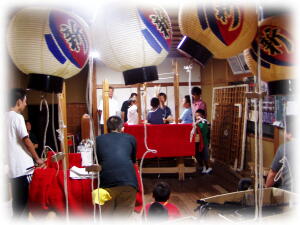 そして、その後から祭の練習が始まる。 各組の会場からは、笛や太鼓の音が鳴り、 御坊の町は、どこにいても耳に音が入るようになる。 会場には乗り子や笛の参加者だけでなく、 地域に住む役には付かない子供達も集まってくる。 小さな子供達も、この時だけは夜間外出を許される。 御坊市民にとって、祭とは本番だけではない。 9月に入ると、もう祭は始まっている。 |