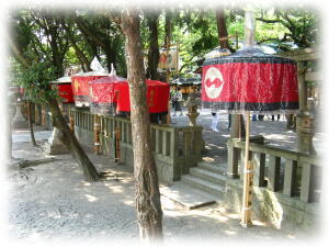 芝を廻ったあとに、各道具が鳥居をくぐる。