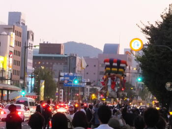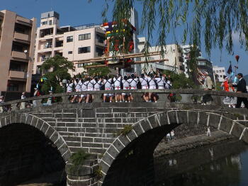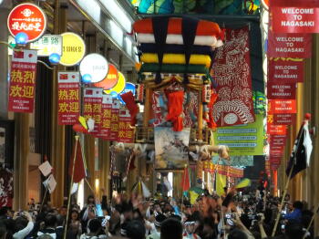 このあと、長崎県庁前の急坂を神輿が走ってゆく姿にも大迫力を覚えました。他にも、石段も走るそうです・・・。 |