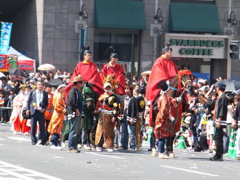 写真では少ししかないように見えますが、実際は猿田彦を先頭におよそ千人もの人が従列をなして進んで行きます。